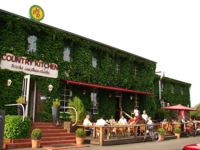 Vom Restaurant "Country Kitchen“ im Erdgeschoss blickt man in die große Reithalle.