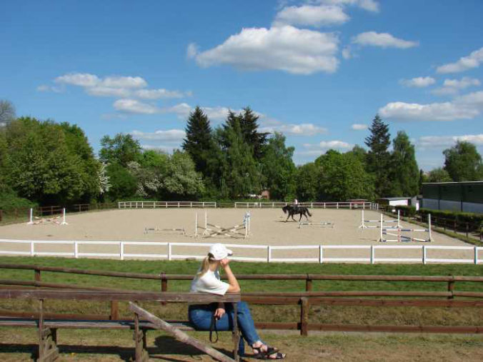 Dahinter verbirgt sich die zweieinhalb Hektar große Reitanlage.
